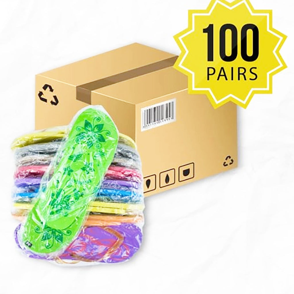 Includes 100 pairs of flip flops.