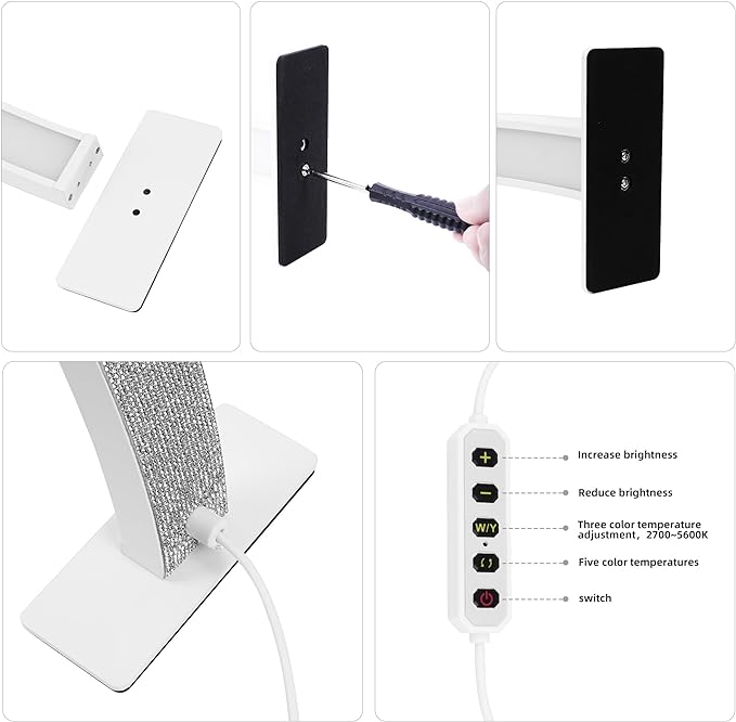 Sumika - Half Moon Light for Nail Desk, 2700K-5600K, Tattoo Lighting Lamp, Nail Desk Lamp, Eyelash Light, Salon&Home, White(Crystal Diamond)